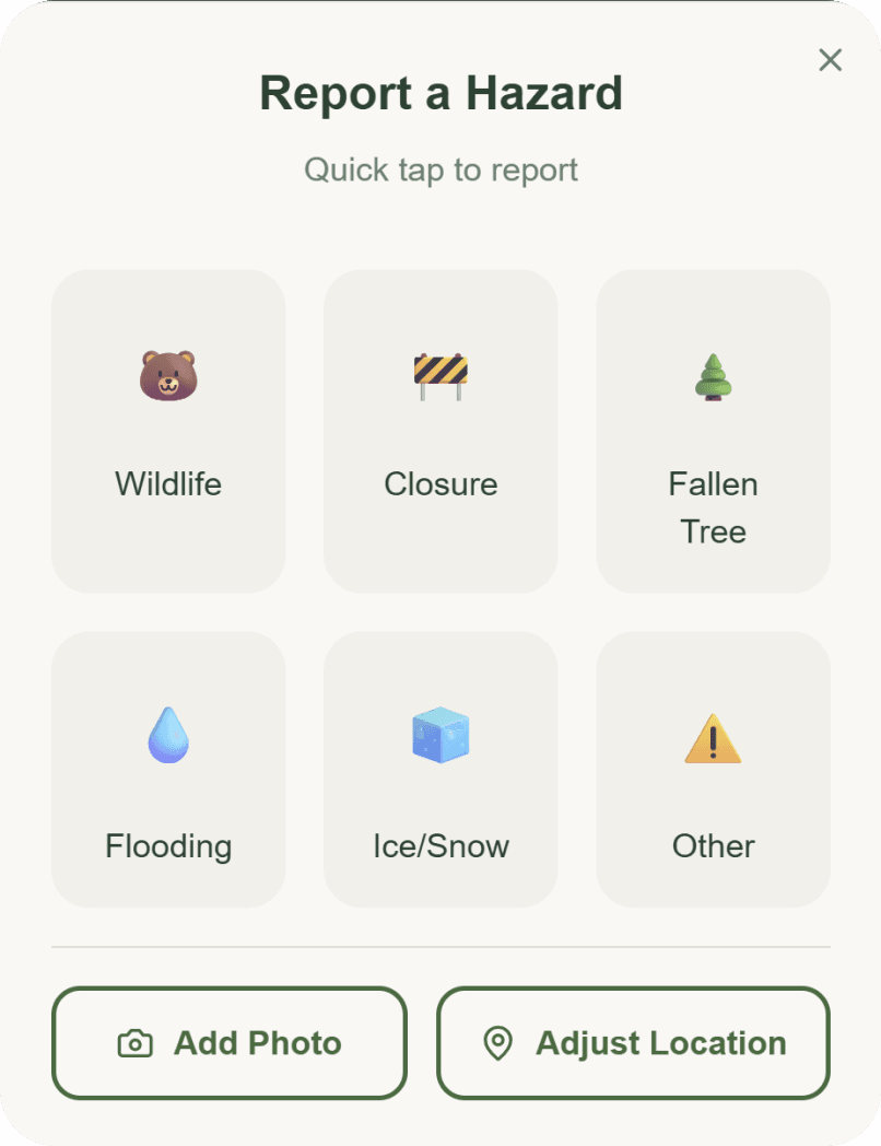 This lets you report anything from wildlife sightings to tripping hazards and conditions so what's ahead is never unknown.