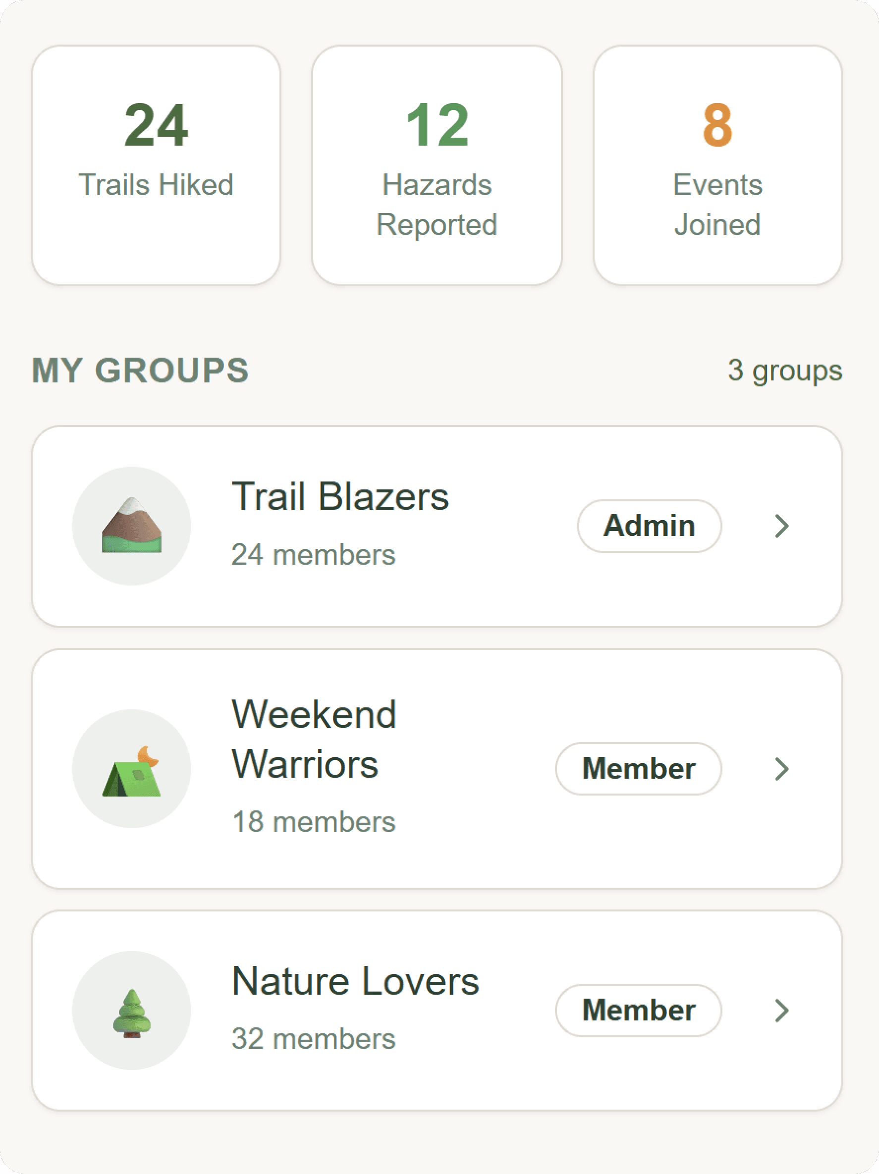 Set goals, track your progress, and earn badges by completing hiking challenges with friends.